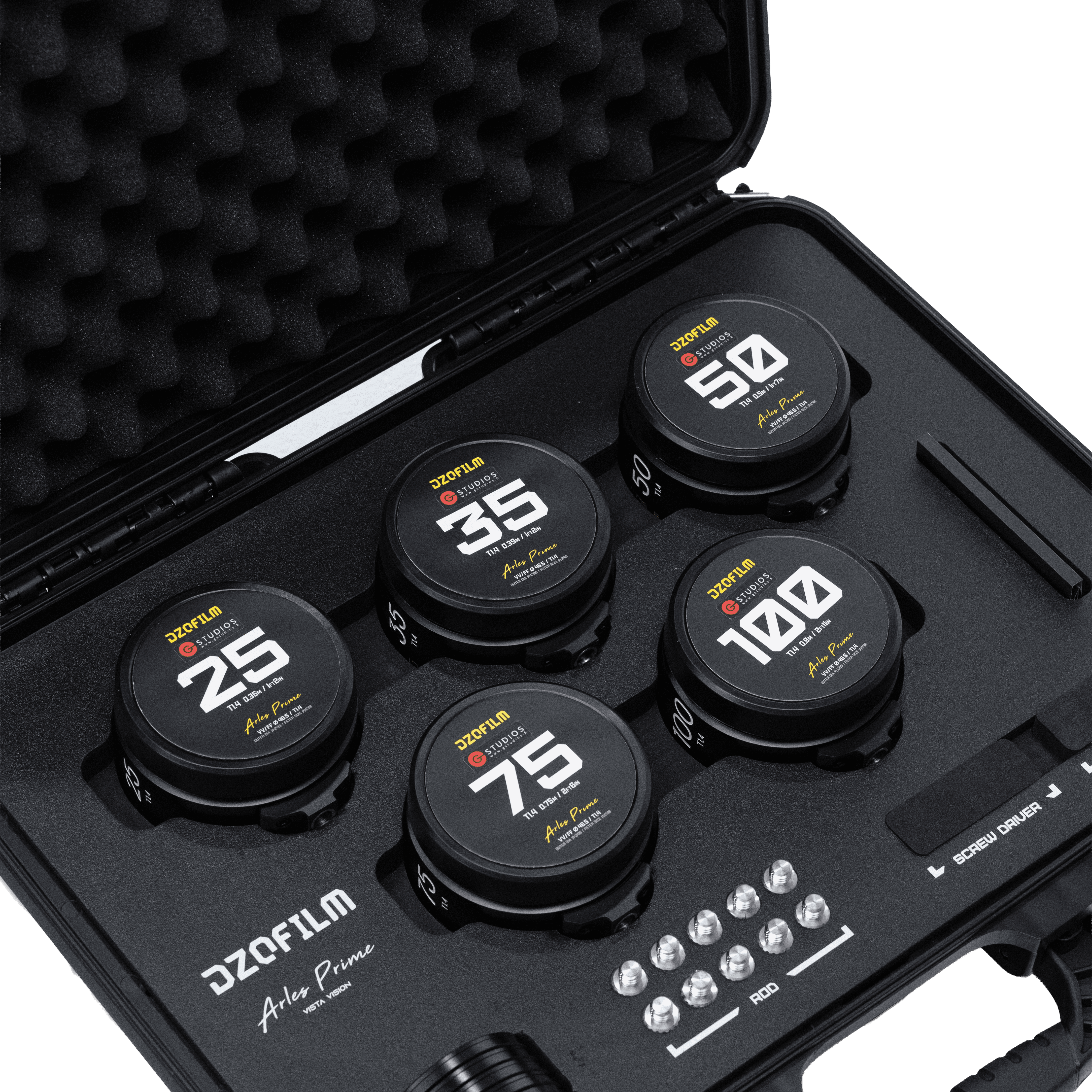 DZOFilm Arles 5-lens kit 25/35/50/75/100mm T1.4 FF/VV prime cine lens PL mount